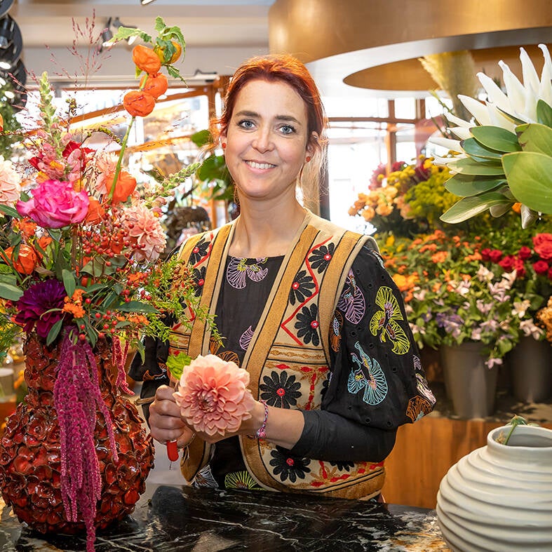 Bij menig bloemist gaat het bloed sneller stromen als het herfst wordt. Zo ook bij Mieke. “De herfst vind ik het mooiste seizoen van alle!” vertelt Mieke, terwijl haar ogen ervan gaan glinsteren. “Mensen trekken langzaam weer naar binnen en maken het daar gezellig. Warme kleuren, mooie nieuwe herfstmaterialen en nieuwe collecties siermaterialen maken dat wij naar hartenlust mooie boeketten en bloemarrangementen kunnen maken.”