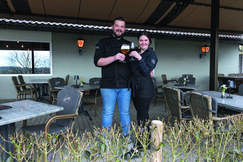 Marieke en Moreno laten je niet alleen de streek op een bordje proeven. Ze serveren deze ook graag in een glaasje! Van de tap komen enkele regionale pilsener- en speciaalbieren. Diverse abdijbieren komen van ‘d’n Abt van Godsdael’ (Val-Dieu) en de gebroeders Joup & Brice brouwen in ‘Hommerig’ (Hombourg) de straffe biertjes Brice Blond, Joup Brune en Aubel Tripple. Maar ook enkele lokale en regionale wijnen en ‘streekwaters’ (likeuren en gedistilleerd) ontbreken niet op de kaart.